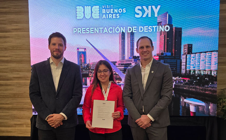 Con foco en fortalecer la promoción de Buenos Aires en el mercado chileno y actualizar a la industria sobre conectividad y producto, el destino realizó un almuerzo de presentación en el hotel Ritz-Carlton de Santiago, instancia liderada por Roberto Klopsch, gerente de Mercados de VisitBue, junto a Benjamín Cox, subgerente de Ventas de Sky Airline.