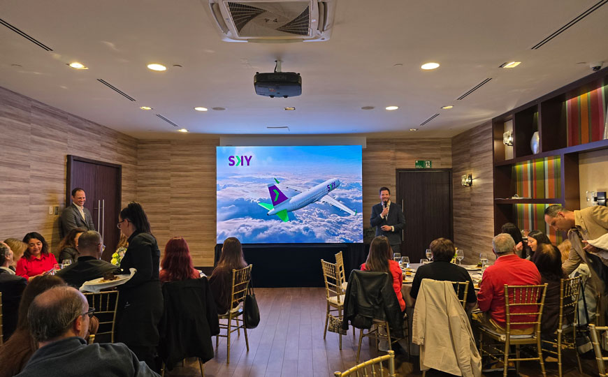 El ejecutivo repasó cifras corporativas de la aerolínea, indicando que Sky cumple 25 años y opera una red con 38 aeropuertos, cerca de 10 millones de pasajeros anuales y presencia en casi 50 destinos en ocho países. También abordó avances en puntualidad y la operación con flota Airbus de la familia A320/A321neo.